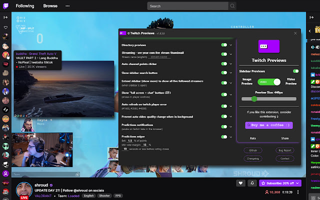 在 twitch 上悬停在流上时的实时 pview |一堆改善生活质量的功能让人抽搐。