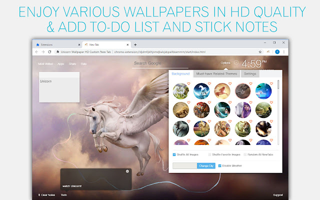 安装我的独角兽新标签,在您的起始页享受各种高清独角兽壁纸。