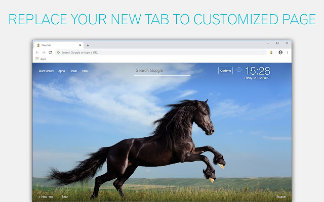 马壁纸新标签将 newtab 变成具有高清马壁纸背景的自定义主题。专为马迷设计。