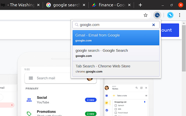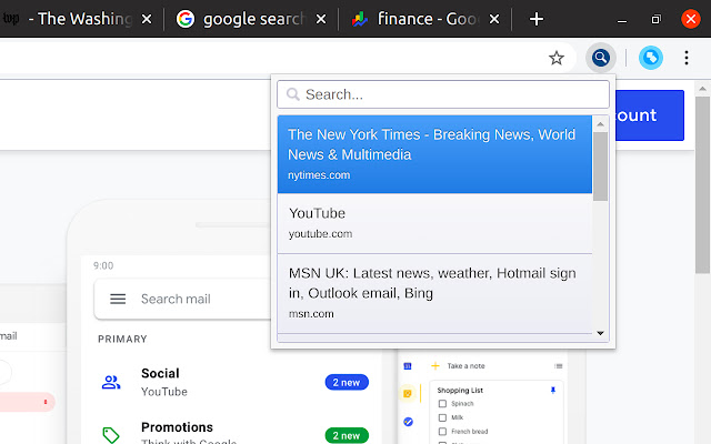 选项卡搜索提供了简单的选项卡导航,它可以使用选项卡 URL 和标题、快捷方式 - Ctrl/Cmd+ 搜索打开的选项卡。