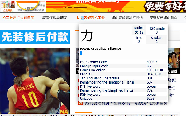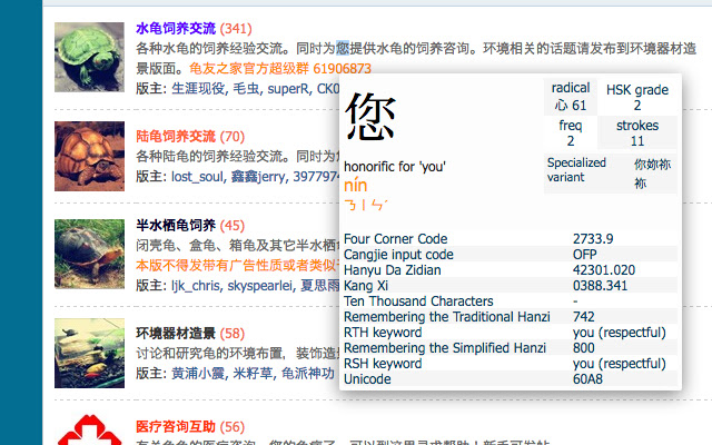 将鼠标悬停在中文单词上以获取其发音和含义。