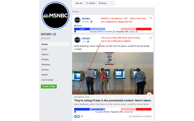 浏览时显示 Facebook、Twitter 和新闻网站的媒体偏见/事实核查评级