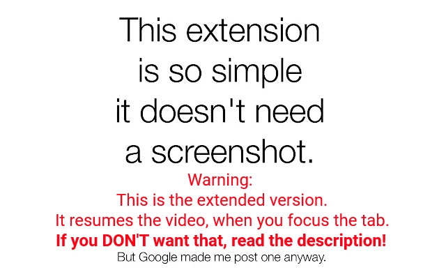 停止 YouTube™ 上的自动播放。扩展:当您聚焦选项卡时开始播放视频。不喜欢?使用没有“扩展”的版本。