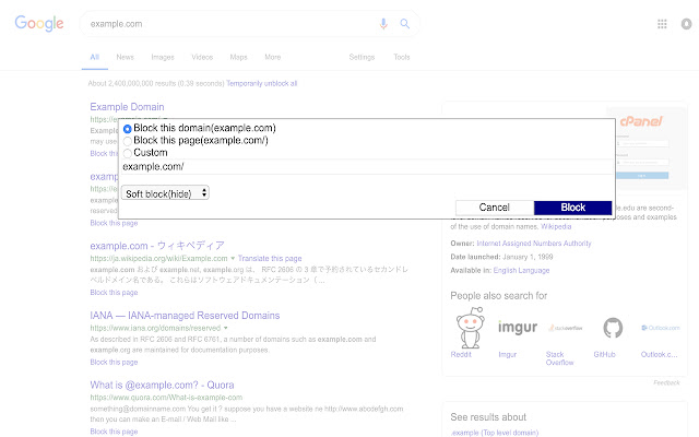 - 使用任意 URL 阻止(例如,在 Twitter 上,您可以按帐户阻止)