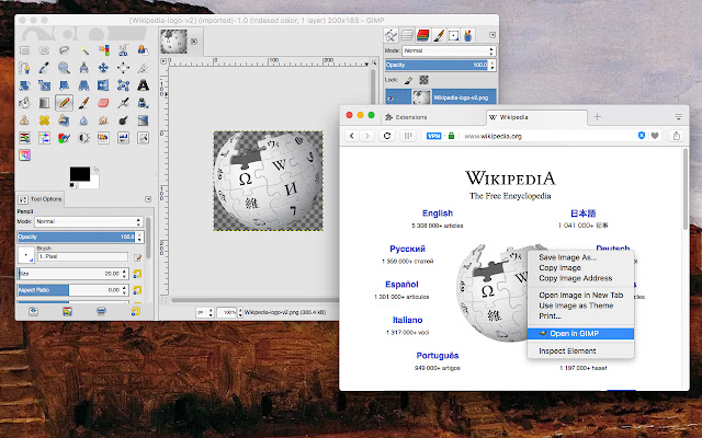 在 GIMP 照片编辑器扩展中打开会向右键单击上下文菜单添加一个新项目,以在 GIMP 照片编辑器中打开图像链接。使用此扩展程序,您可以直接将图像发送到 GIMP,而无需先手动保存它们。如果图像具有有效的 URL,则图像的链接将直接发送到 GIMP。如果图像是 DATA URL 格式,则图像存储在您的临时目录中,然后调用 GIMP 来打开该临时图像(您可以在选项页面上更改此行为)。