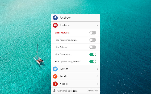 UnDistracted - Hide Facebook, YouTube Feeds