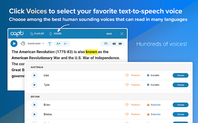 Capti 将提高您的工作效率并使您的阅读更加愉快。对于教师、学生、语言学习者、通勤者、忙碌的专业人士、退休人员、有阅读障碍或其他学习障碍的人等来说,这是一个很好的工具。