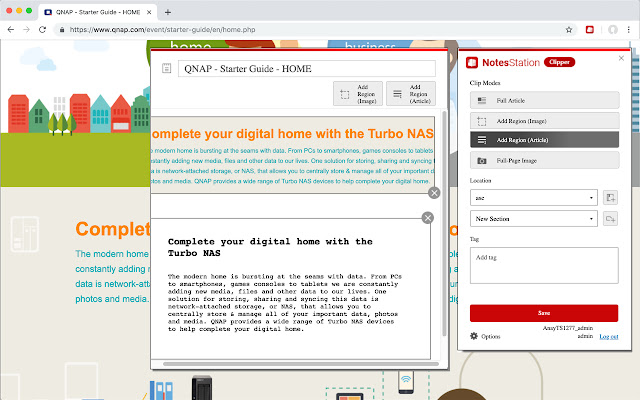 剪辑您想要保留的网页。将它们保存在 Notes Station 3 中。通过登录您的 NAS,在 Qnotes3 或任何网络浏览器中轻松找到它们。