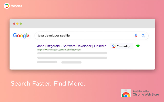 WhenX 通过在链接旁边添加带有上次访问时间的标签,帮助您在 Google™ 搜索结果中找到以前访问过的链接!无需搜索您的历史记录或打开无数链接以寻找正确的链接。将鼠标悬停在标签上将为您提供更详细的图章,其中包含您上次访问的日期和时间的详细信息。
