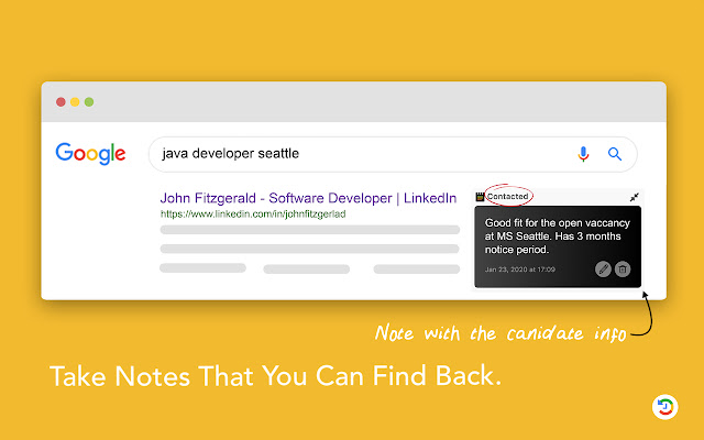 在 Linkedin 个人资料上做笔记并将其与 Google 搜索结果同步。组织您的采购!