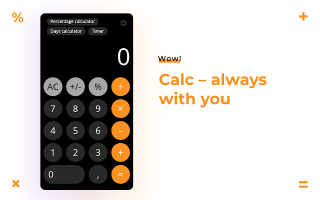 Calc 是一个简单的在线计算器,可以节省您的时间。您可以直接在浏览器中使用 Calc,而无需打开任何其他选项卡。 Calc 是一款适用于工作、家庭或学习的优秀在线计算器。只需为每次计算。数到哪里。
