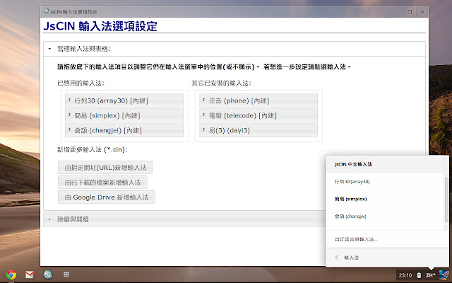 Chinese Input Methods (XCIN/GCIN compatible) for Google ChromeOS™