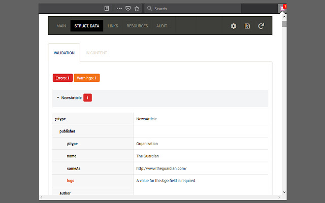 - 结构化数据完整验证(json+ld 和微数据)。完整报告相当于谷歌在线结构化数据工具。