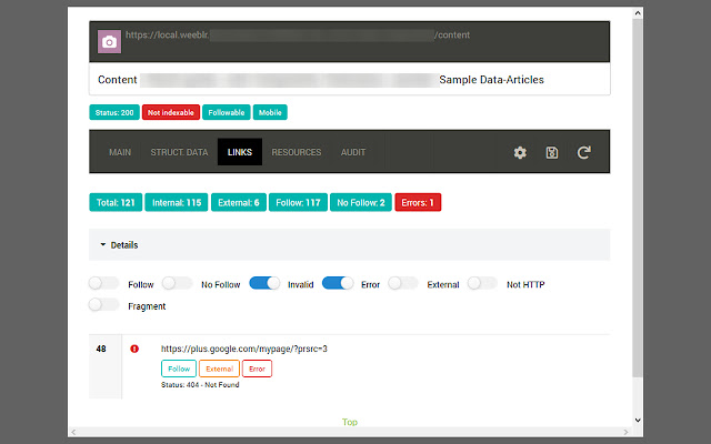 - 页面上的所有链接,包括关注、不关注、内部与外部、无效、非 HTTP 等
