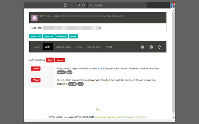 - AMP 页面:完整验证。扩展中显示错误和警告(AMP 相关功能在 Firefox 上不可用)