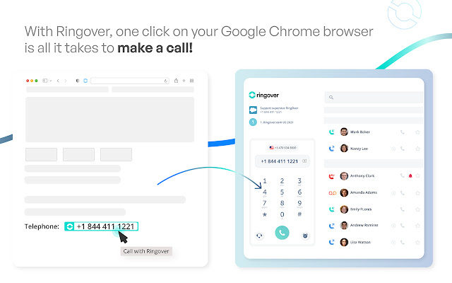 当您单击一个号码时,呼叫将从您的 Ringover 拨号器发起!
