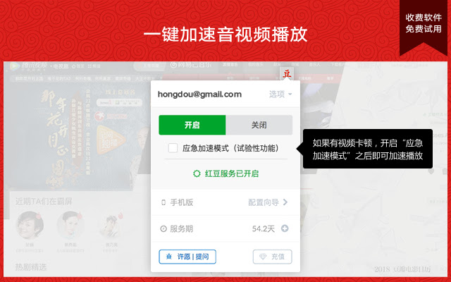 另外贴心提供的『应急加速模式』可以解决绝大多数的播放卡顿的问题,也可以支持范围之外的所有大陆网站。