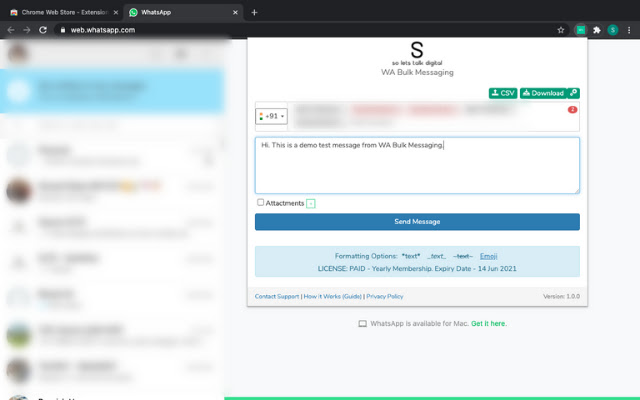SoLetsTalkDigital(也称为“SO”)的 WAPP 批量消息和自动化扩展可让您将单个或批量 WhatsApp 消息发送到联系号码列表。