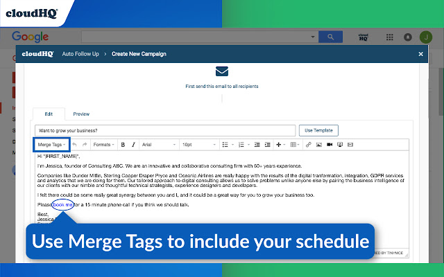 假设您在社交活动中遇到了很多人。您想通过电子邮件向所有人发送电子邮件以探索机会,但很难跟进这么多人。 Gmail 自动跟进可让您轻松联系客户。只需点击几下,它就会通过个性化电子邮件为您自动处理多个联系人。