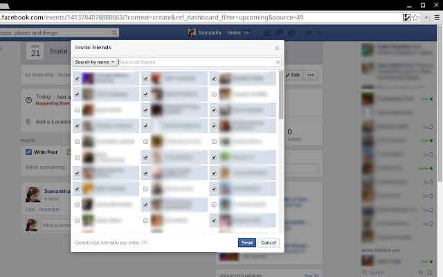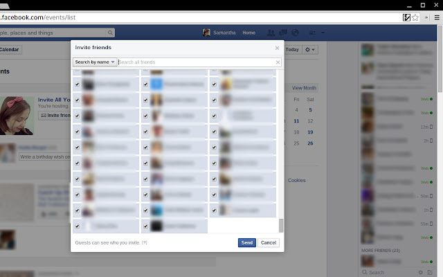 3.0.0 版是此扩展的最终版本。截至 2014 年 11 月,此扩展不适用于 Facebook。我决定停止维护这个扩展。 Facebook 的新更新有一个内置的全选功能,使这个扩展变得多余。您不再需要此扩展程序来轻松邀请朋友参加 Facebook 活动,这是个好消息!