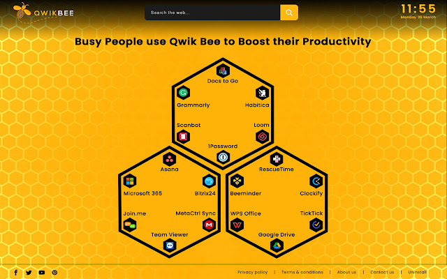 Qwik Bee 是一个扩展程序,旨在通过简化您的桌面生产力和浏览需求,让您的生活更轻松。通过单击打开新选项卡,您可以立即访问大量生产力软件工具供您选择,并直接从您的浏览器享受快速无缝的在线搜索体验。