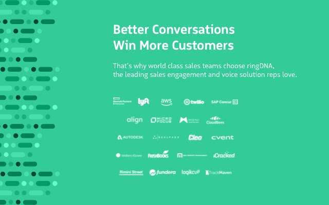 面向 Salesforce 客户(如 Amazon、Twilio、Lyft 和 HPE)的排名第一的解决方案。 ringDNA 是一个完整的销售加速平台,专为您业务中的每个收入利益相关者构建。
