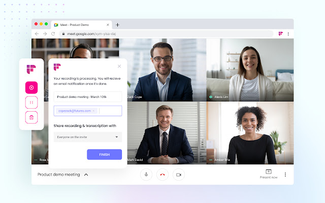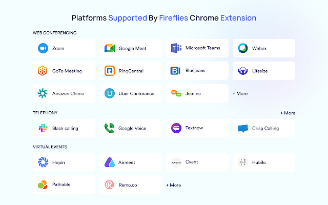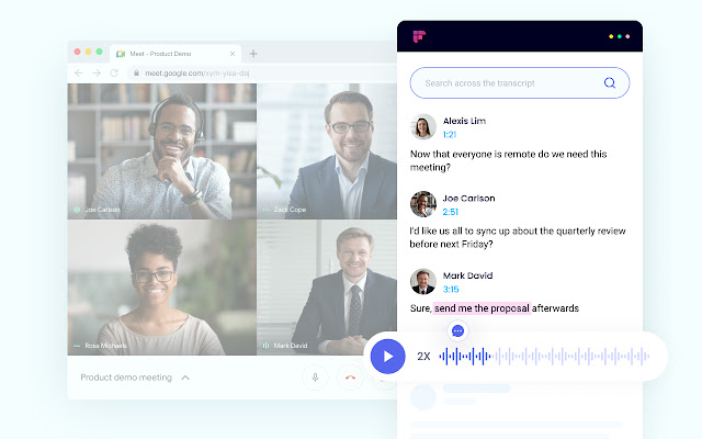 Fireflies Chrome 扩展程序让您可以直接从浏览器录制和转录任何会议,而无需邀请 Fireflies Notetaker Bot 参加会议。