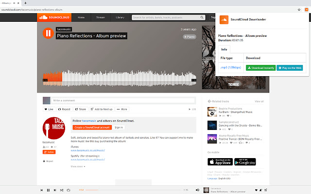 换句话说,此扩展程序将帮助您将 SoundCloud 转换为 mp3,并通过将它们发送到您自己的 iPod、手机或计算机上而无需 Internet 连接从任何地方收听它们。