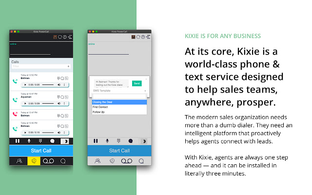 Kixie 是一个销售参与平台,它为 Hubspot、Pipedrive、Zoho 和领先的 CRM 提供超可靠、易于自动化的呼叫和短信,从而提高销售团队的绩效。