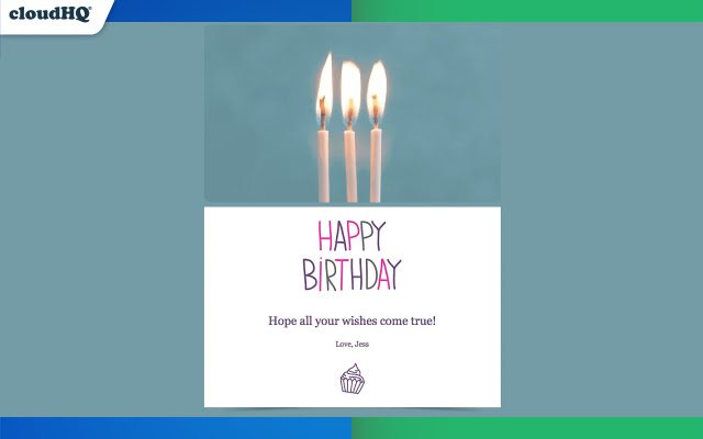 使用 cloudHQ 提供的免费 Gmail 电子贺卡,您的电子邮件收件人无需前往任何其他网站领取电子贺卡,也不会丢失在垃圾邮件文件夹中。