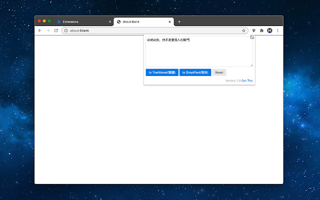 方便地进行简体和繁体的转换。适用于需要复制粘贴的场景,没有任何臃肿的功能,十分轻便。