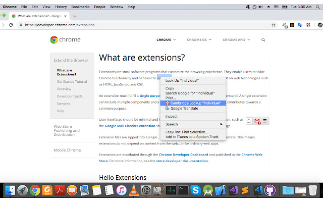 - 只需右键单击所选文本并选择“Cambridge Lookup ...”