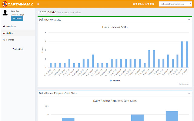 CaptainAMZ 跟踪并显示您所有产品的评论。您可以查看最新评论、对其进行排序或按产品标题或 ASIN 进行搜索。每当您收到新产品评论时,CaptainAMZ 的亚马逊评论管理器功能都会提醒您。 CaptainAMZ 亚马逊评论检查器功能将始终帮助您跟踪您的评论。