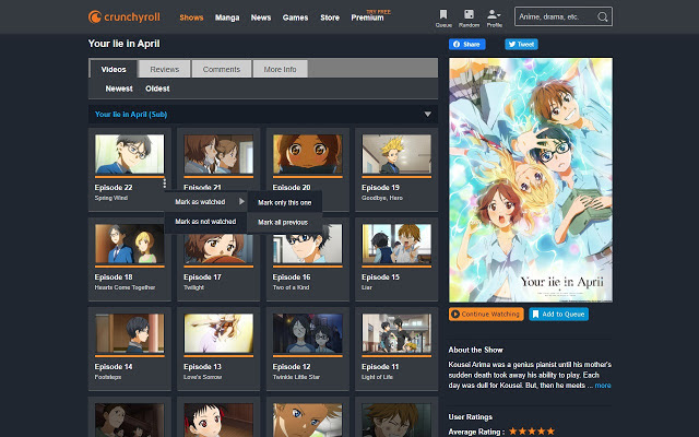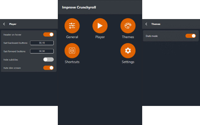 增强 Crunchyroll:剧院模式、跳过前奏/后奏、标记为已观看/未观看、快进/快退按钮、黑暗模式……