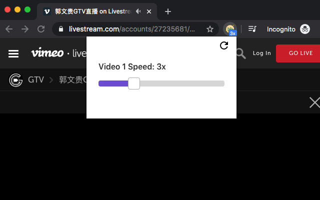 目前郭先生?的直播只能在 [GTV | Livestream](https://livestream.com/accounts/27235681) 上看,但非常不爽的是 Livestream 竟然不能像 YouTube 那样调整播放速度?。对于我这种 [996](https://github.com/996icu/996.ICU/blob/master/README_CN.md) 的码农而言,两倍速看视频是必须的,否则根本不够时间?。