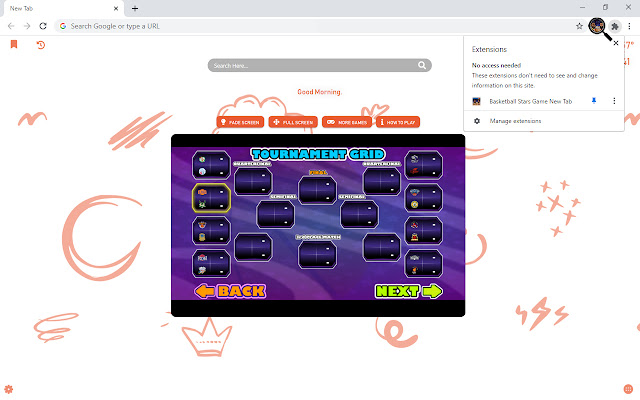 新标签页现在更有趣。篮球明星游戏在新标签中等着你。