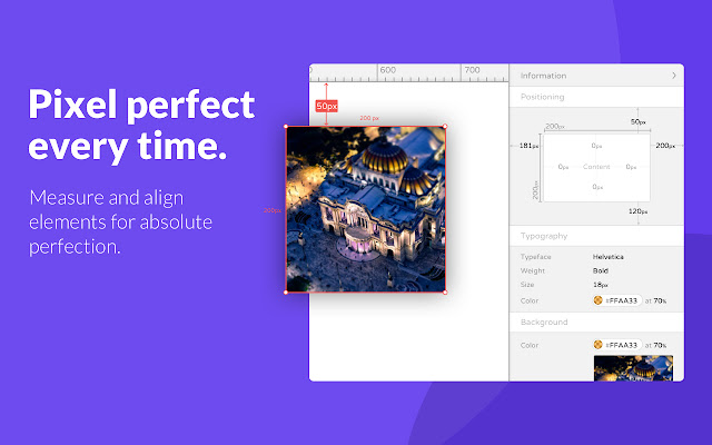此扩展程序为您的浏览器添加了标尺和指南。您可以完美地对齐元素,测量它们之间的空间,并发现任何对齐问题或将其用于在浏览器中进行设计。您可以使用标尺添加参考线、选择和比较元素并查看它们的偏移、距离和大小。将来您还可以添加网格、保存、移动和删除指南、更改设置。