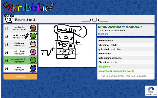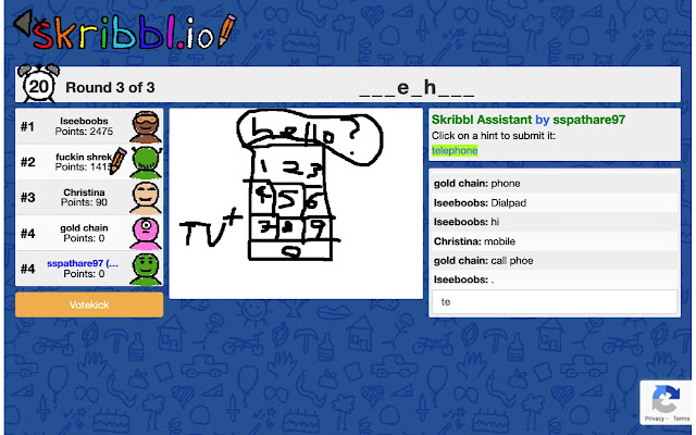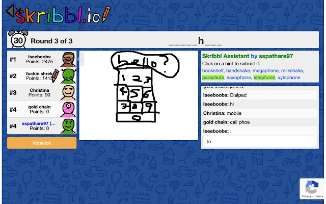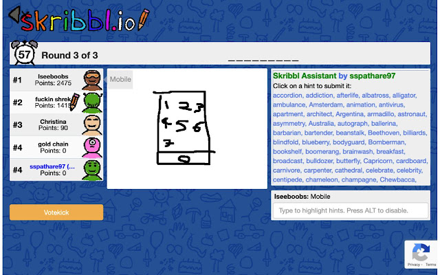- 不要每秒点击多个提示,因为快速提交多个单词会导致被 Skribbl.io 踢出