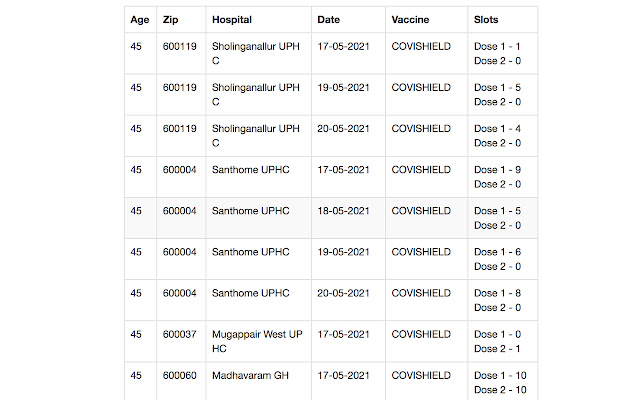 该扩展程序将每隔几秒钟监视 cowin.gov.in 以获取给定密码/地区和年龄段的可用疫苗插槽。一旦找到,它将通过音频警报提醒用户,用户可以单击扩展程序以查看插槽。