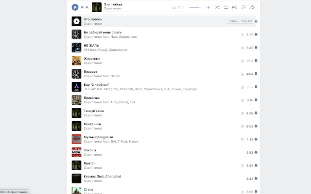 谷歌浏览器和 Yandex 浏览器的扩展,允许客户一键从 VKontakte 下载音乐。