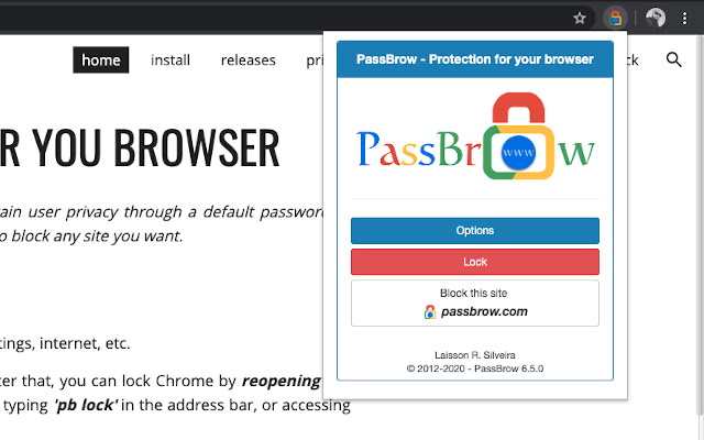 使用起来非常简单,只需访问扩展选项并注册一个新密码即可。之后,您可以通过重新打开浏览器、单击锁定弹出按钮、按快捷键 CTRL + SHIFT + 9、在地址栏中键入“pb lock”或从菜单访问锁定浏览器选项来锁定 Chrome。的上下文。
