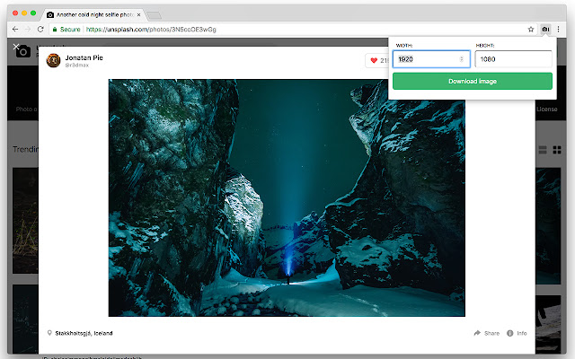 这个微小的扩展使您可以轻松地以您指定的分辨率从出色的 unsplash.com 下载图像。这意味着更小的下载量和更少的调整图像大小的麻烦。