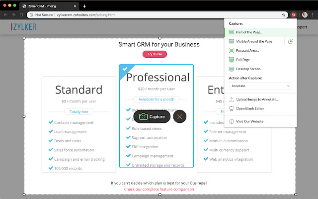 - 捕获整个页面或页面的可见区域或仅页面的一部分。