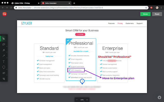 在捕获其屏幕截图后注释网页以查看并将更改保存为图像。您还可以在打开 Zoho Annotator 并上传相应图像后,为桌面上的图像添加注释,例如设计模型、插图和图表。在下面查看它的功能。