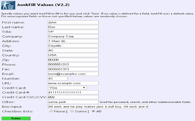 用法:安装后,只要您想自动填充 Web 表单,请随时单击 JunkFill 图标。