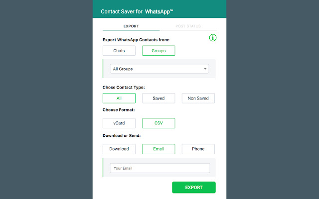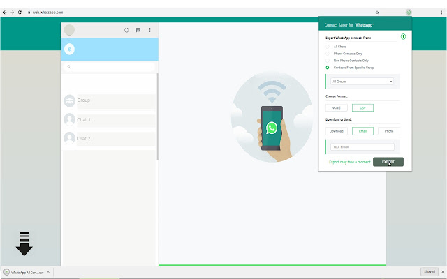 Contact Saver for Chrome 通过保存您的 WhatsApp 聊天和群组中的每个人的号码,帮助您提高您的 WhatsApp 状态。