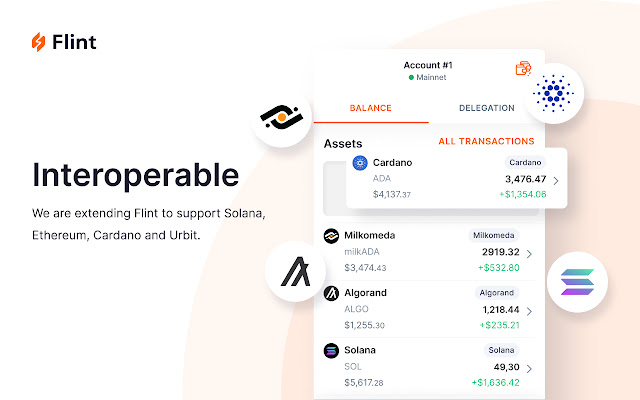 Flint 是 DeFi 和 NFT 的友好首选钱包。作为一个轻钱包,Flint 允许您在浏览器中轻松管理来自不同链的多个资产。凭借对互操作性标准的原生支持,无论您需要使用哪个平台,Flint 都能提供流畅的体验。