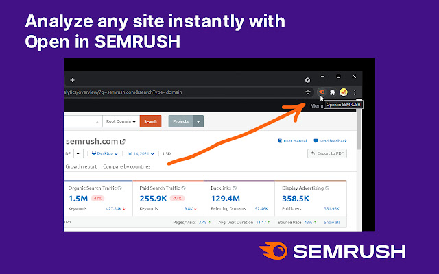 使用 Open in SEMRUSH 检查任何网站的流量、关键字和广告