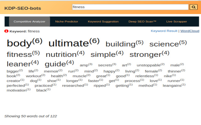我们的关键字建议功能允许您利用将显示的关联关键字。使用此工具,您可以轻松地为您的图书选择正确的关键字,并创建一大堆关键字以获得最佳结果。