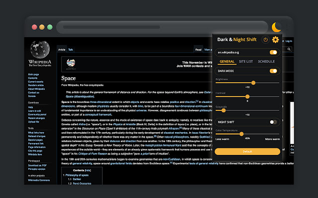 如果网站有内置夜间主题或深色模式,您可以直接从扩展程序控制它,如果没有(如 Gmail、Google Docs、Office Online、Github 和数百万其他),我们将转换颜色为您提供在黑暗模式下平滑过渡。